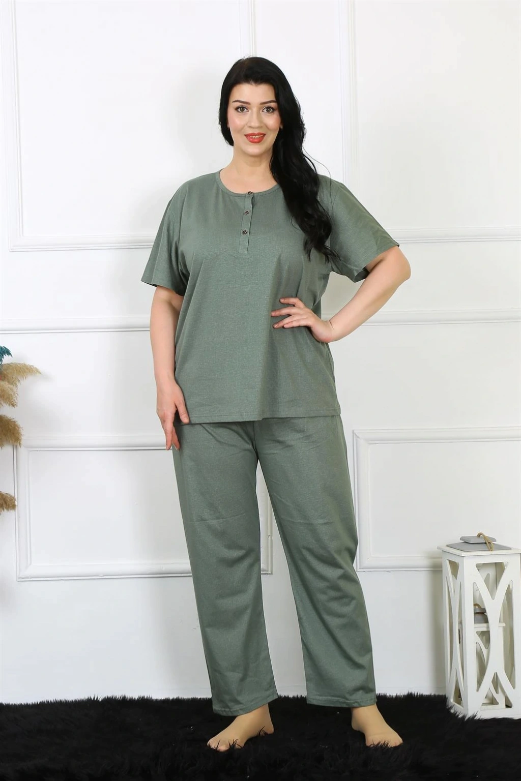 Moda Çizgi Kadın Kısa Kol Büyük Beden Pijama Takım