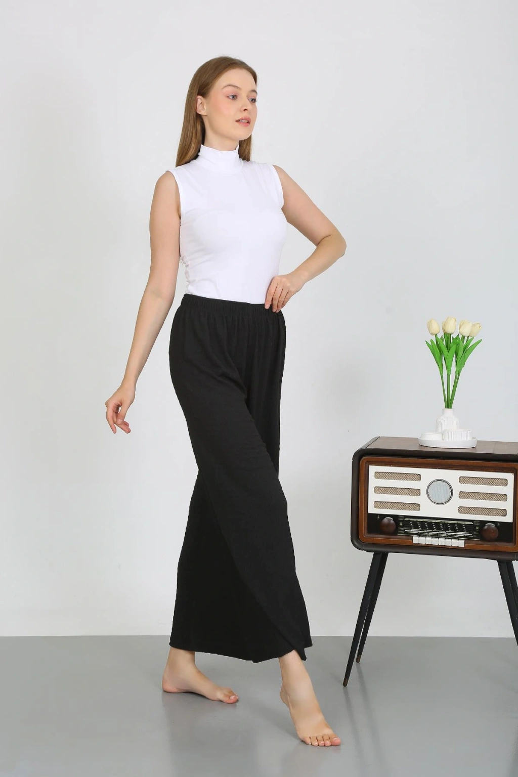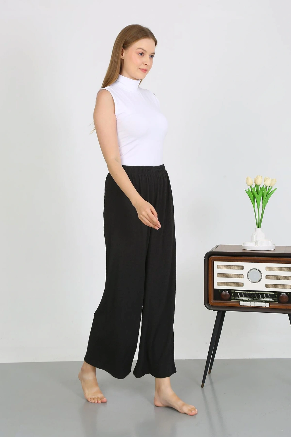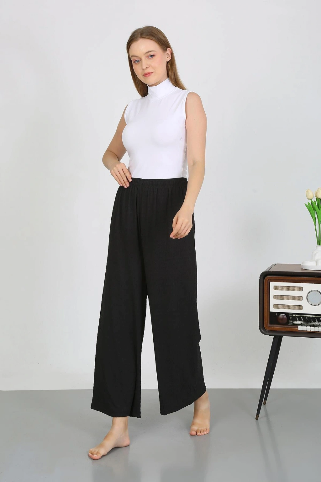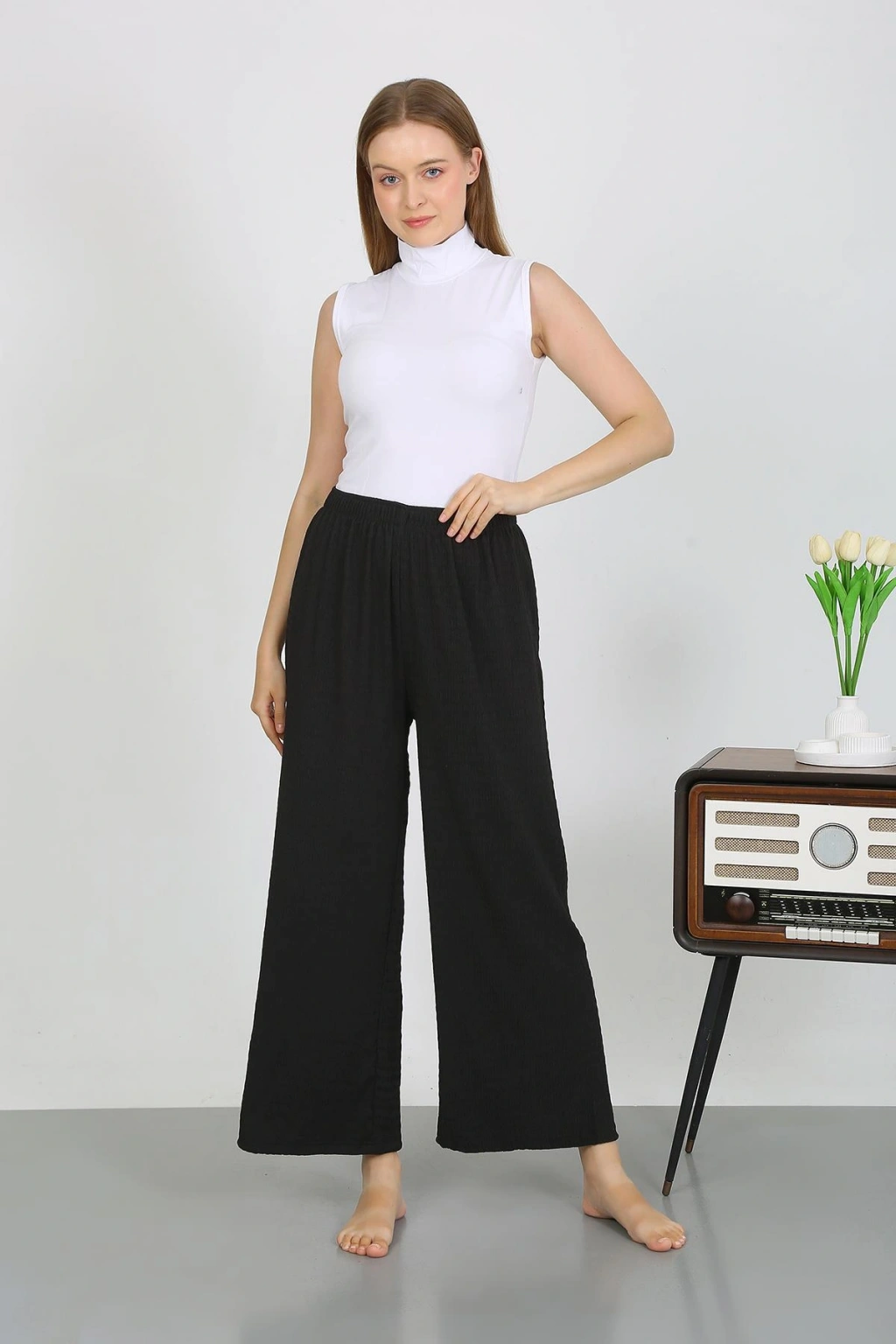 Moda Çizgi Kadın Bürümcük Kumaş Hafif-Esnek Pantolon 210074 Siyah