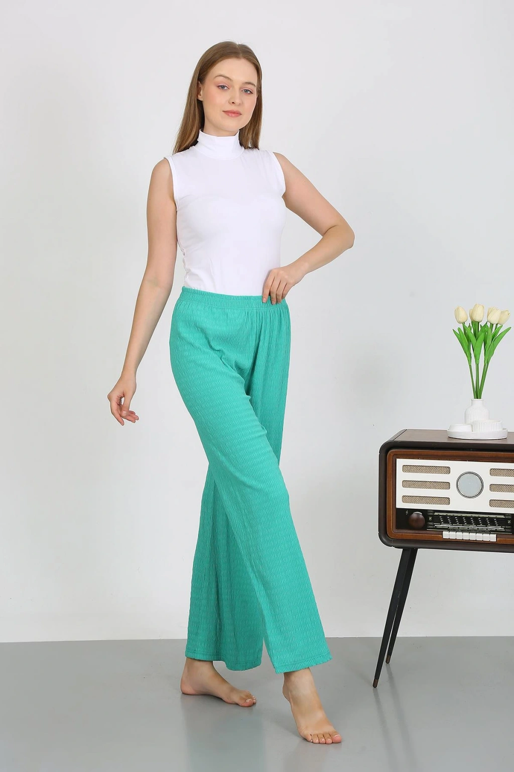 Moda Çizgi Kadın Bürümcük Kumaş Hafif-Esnek Pantolon 210074 Yeşil