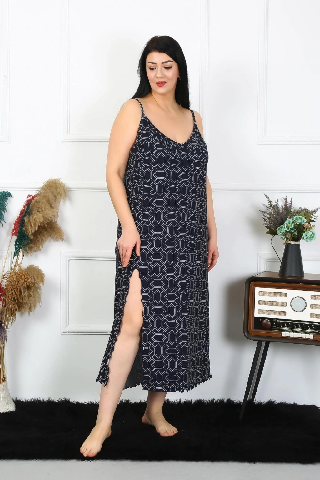 Moda Çizgi İp Askılı Penye Uzun Gecelik
