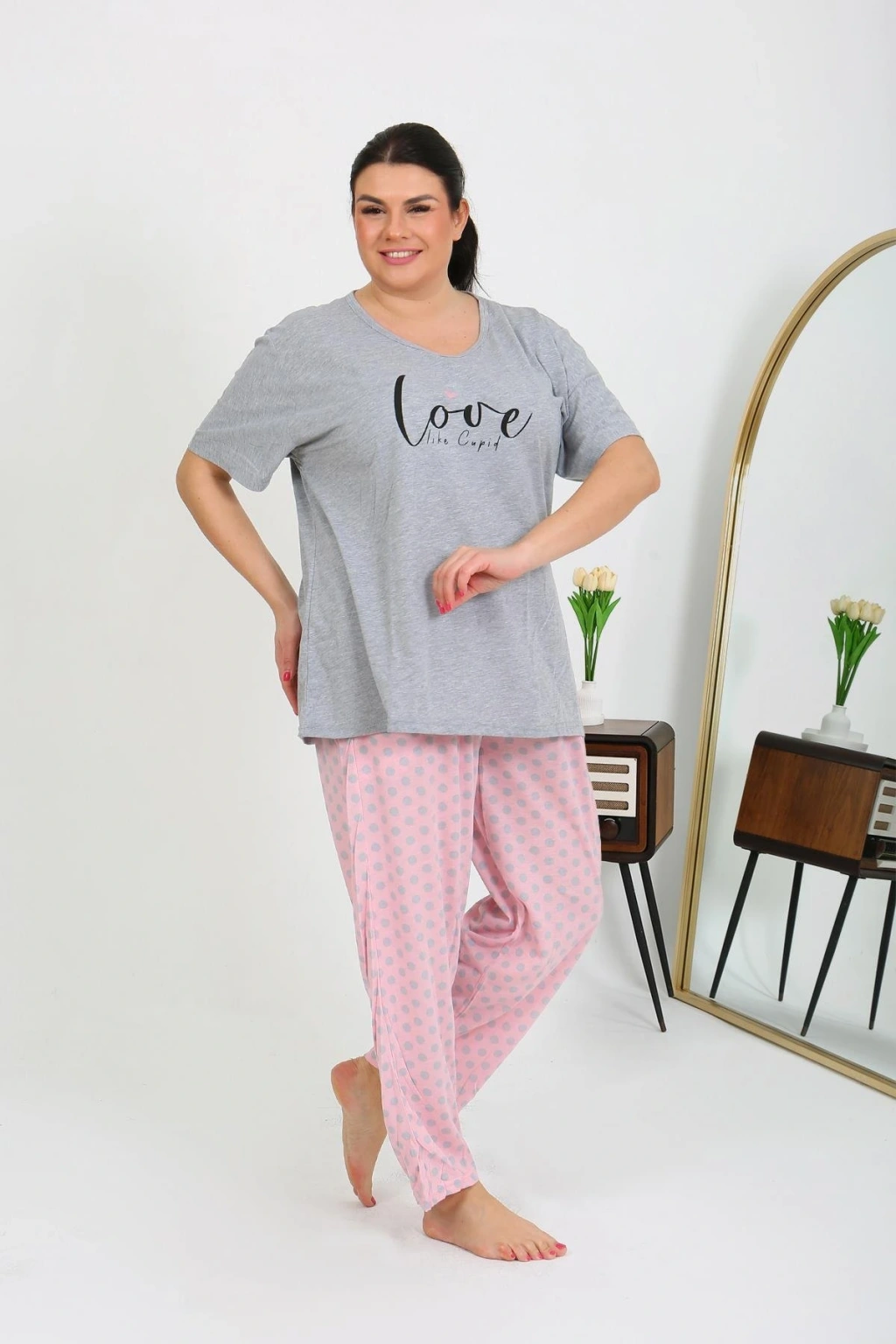 Moda Çizgi Kadın Kısa Kol Büyük Beden Pijama Takım