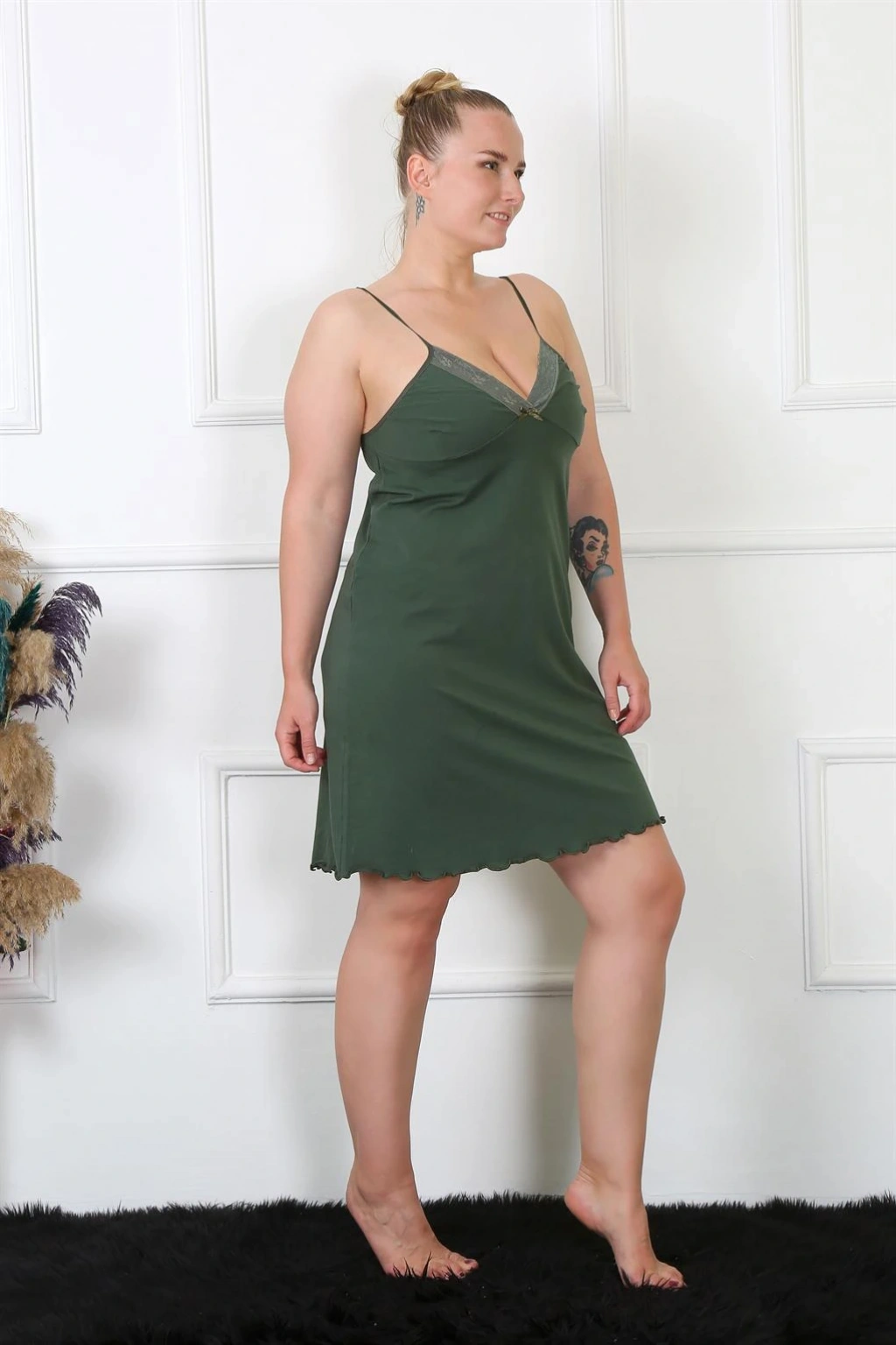Moda Çizgi Kadın Pamuklu İp Askılı Büyük Beden Gecelik