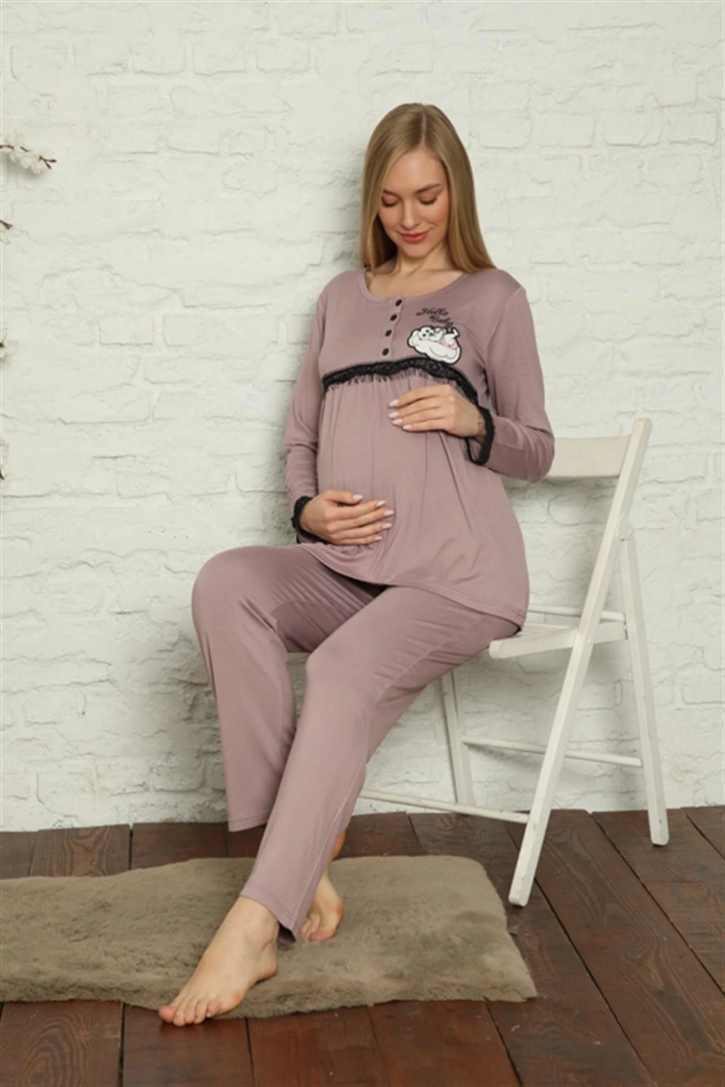 Moda Çizgi Kadın %100 Pamuklu Hamile Pijama Takımı
