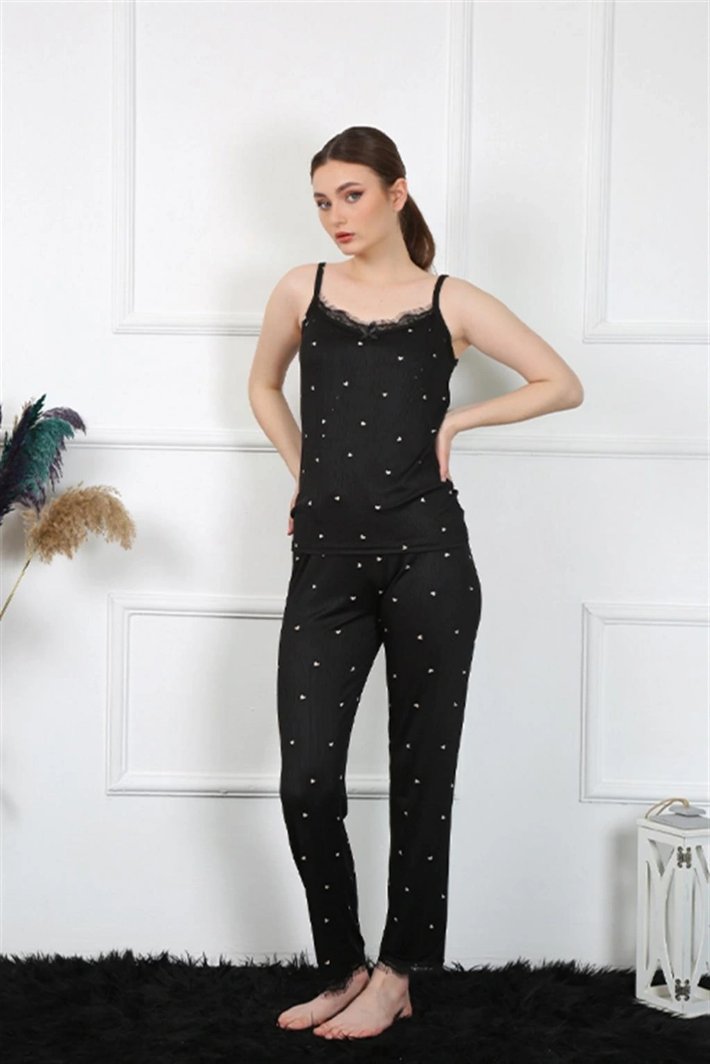 Moda Çizgi Kadın İp askılı Pijama Takım