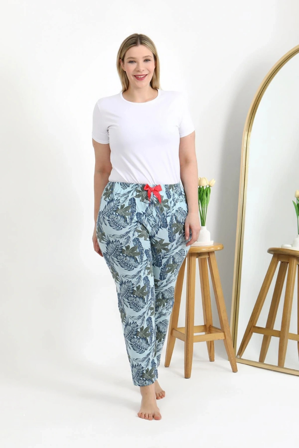Moda Çizgi Kadın Pamuklu Büyük Beden Alt Pijama