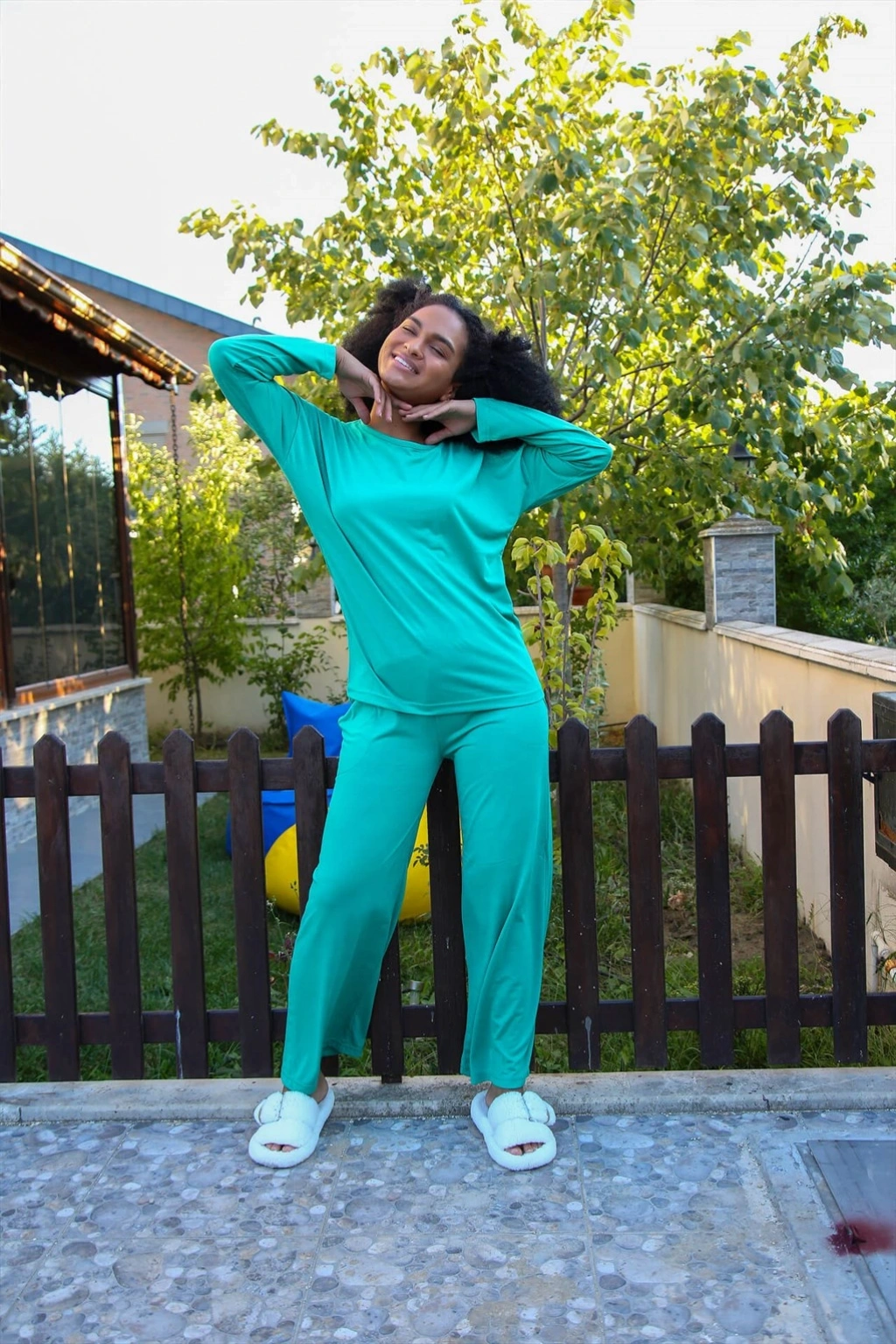 Moda Çizgi Kadın Penye Bol Paça Pijama Takım