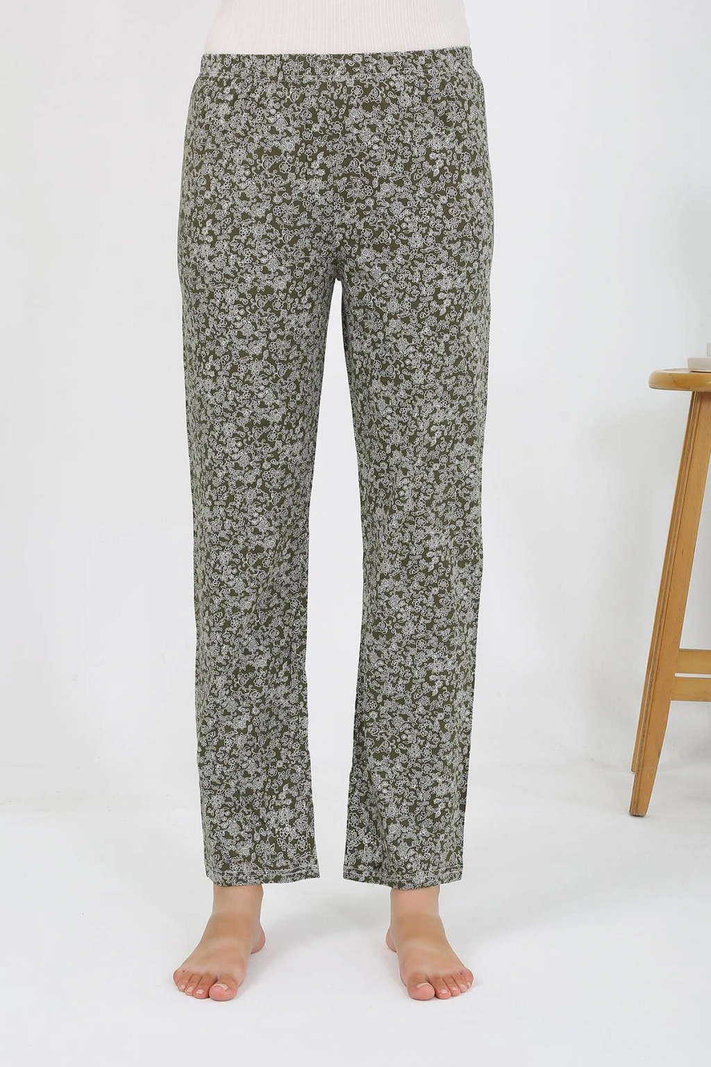 Moda Çizgi Kadın Penye Desenli Tek Alt Pijama 27533 Haki