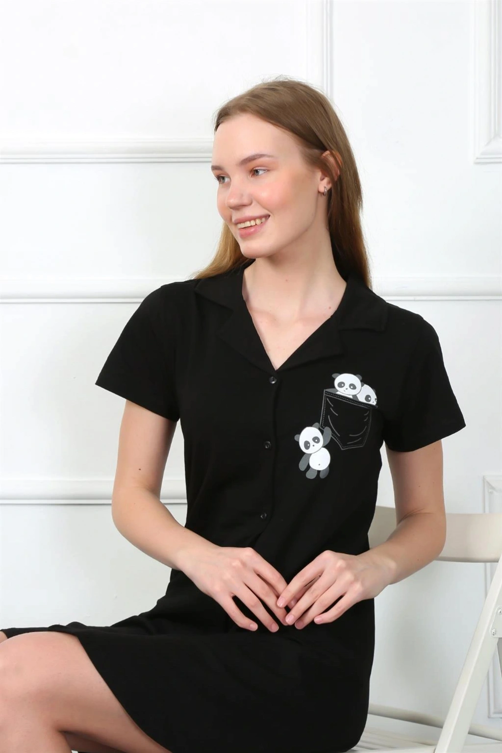 Moda Çizgi Kadın Önden Düğmeli Gecelik