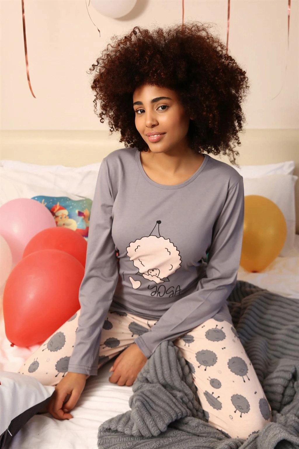 Moda Çizgi Kadın Penye Uzun Kol Pijama Takım