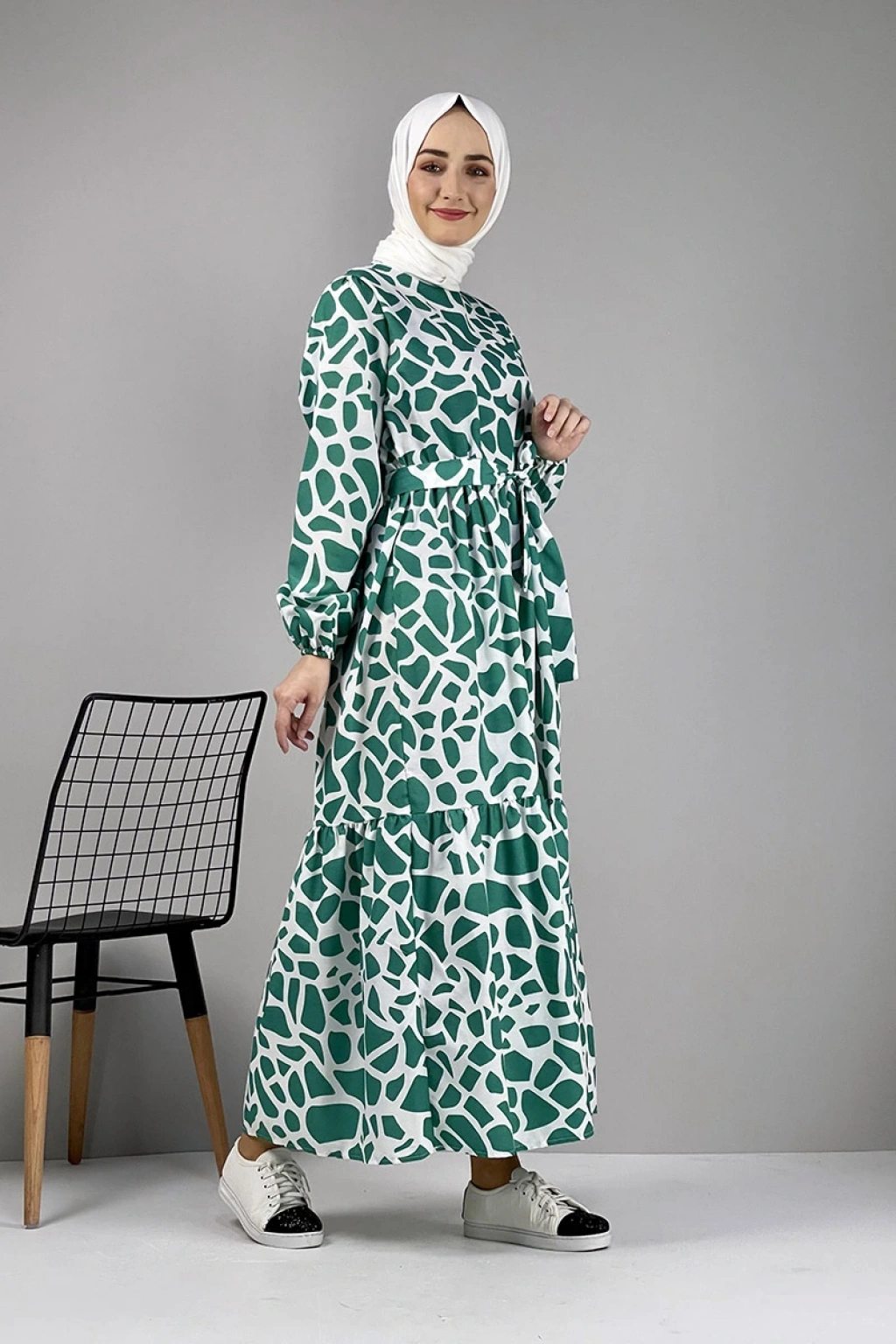 Desenli Tesettür Elbise Yeşil