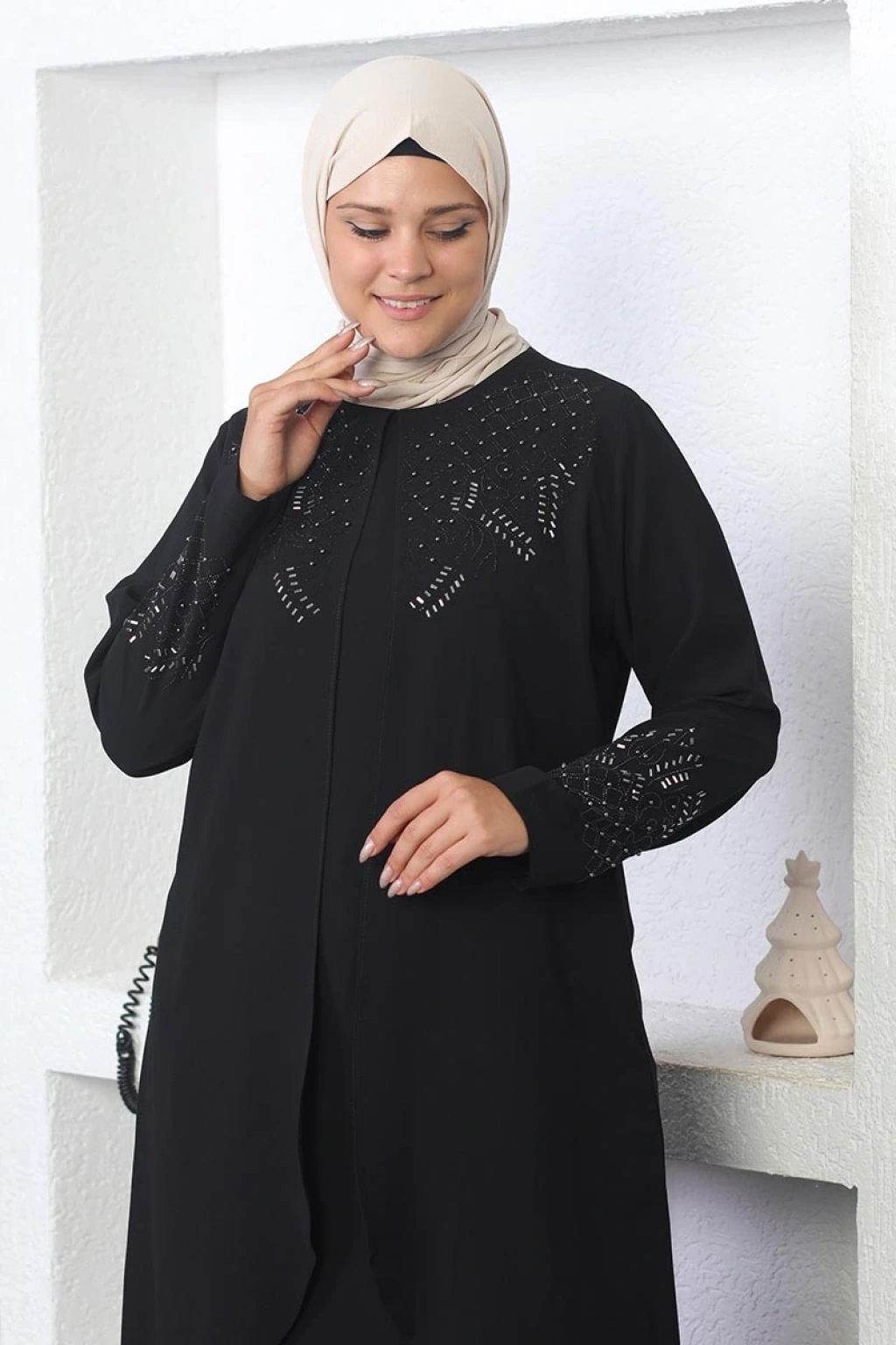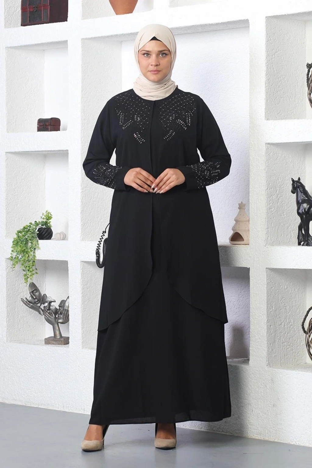 Taş İşlemeli Tesettür Elbise Siyah