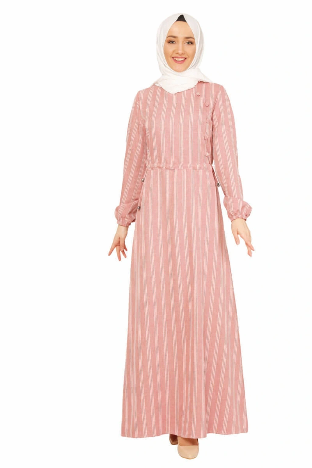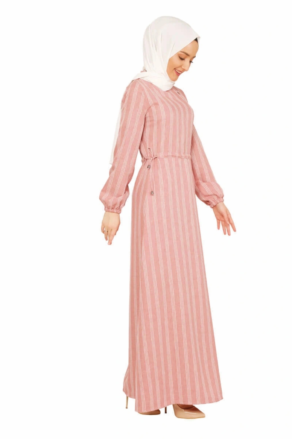 Büzgü Detaylı Tesettür Elbise Gül Kurusu