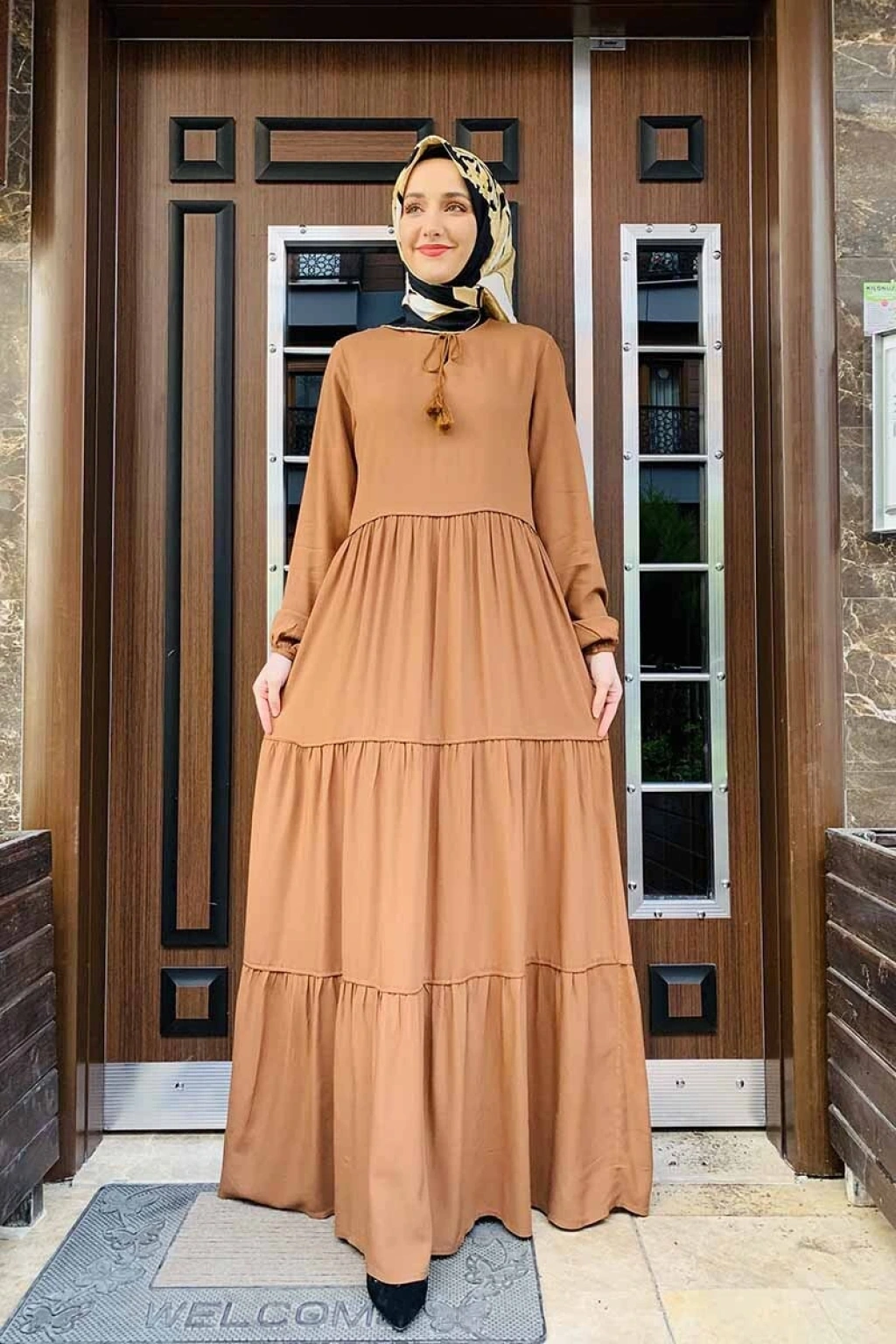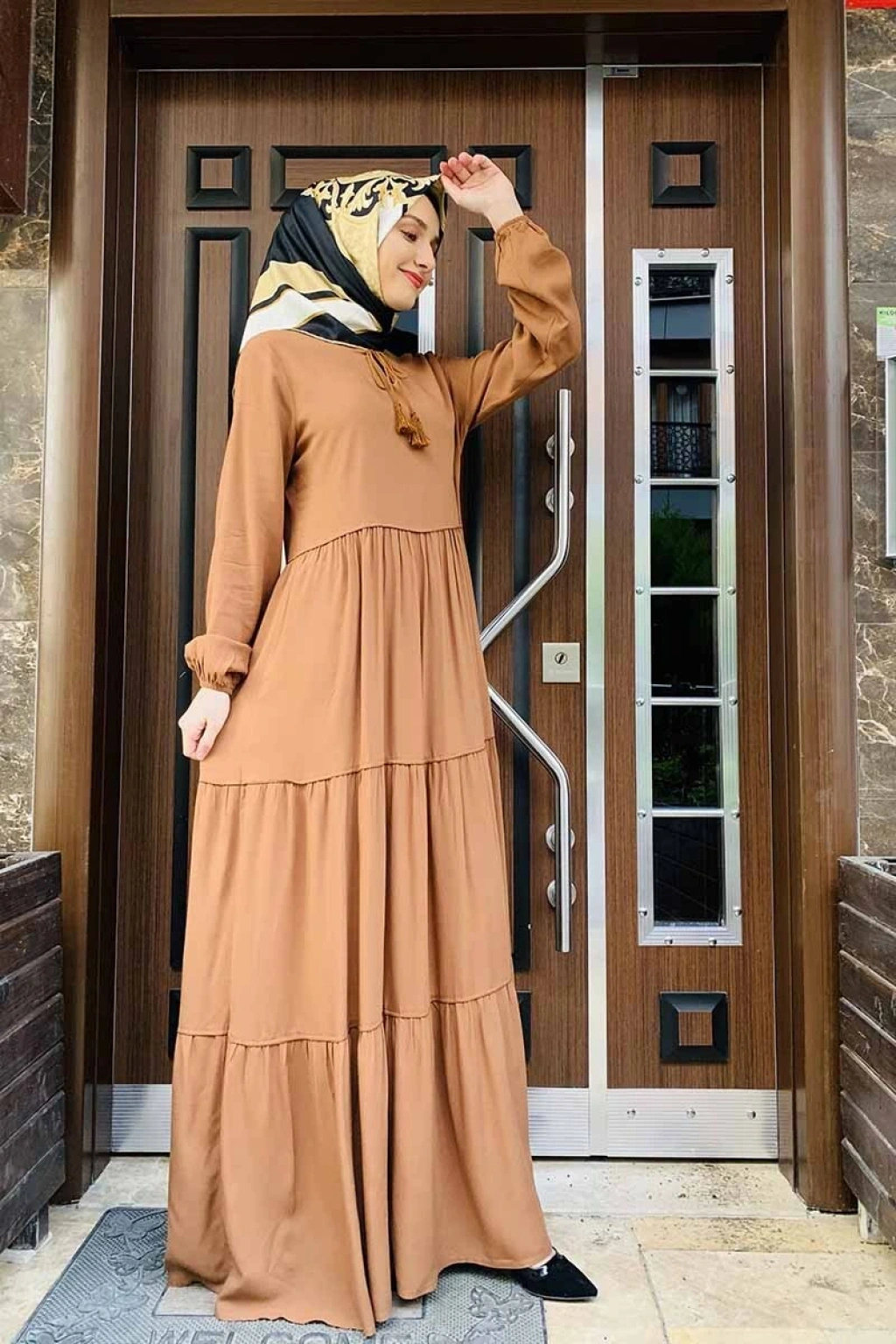 Yeni sezon tesettür moda ürünüdür.Tütün renktedir. Astarsız. %100 Pamuk Viskon kumaş. Lastik kollu. Sıfır yaka detayı ile rahat kullanıma sahiptir. 4 Mevsim tercih edebilirsiniz. Büyük beden seçeneği mevcuttur.