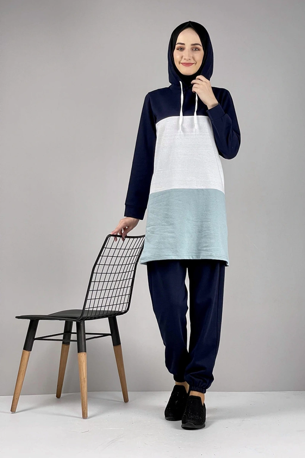 Yeni sezon tesettür moda ürünüdür.Ürünümüz iki iplik kumaştan üretilmiştir. Uzun kolludur . Eşofman altı paçası lastiklidir. 4 Mevsim kullanıma uygundur.