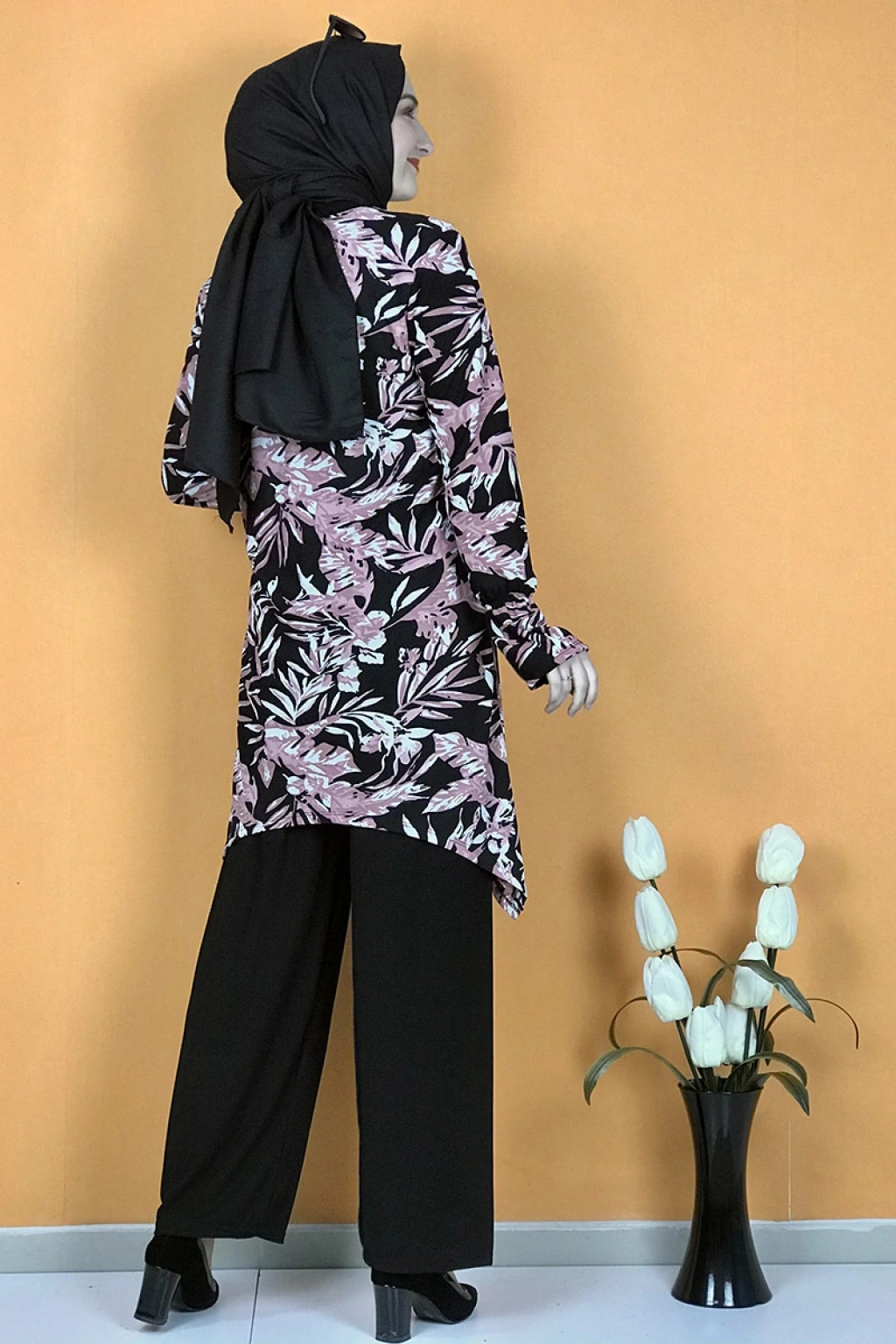 Yeni Sezon Tesettür Moda ürünüdür .Modelimizde pegasus kumaş kullanılmıştır. Ürün astarsız ve her giyside tercih edilen sıfır yaka (bisiklet yaka) modeldir.  Pantolon beli lastiklidir .4 mevsim tercih edilebilir.