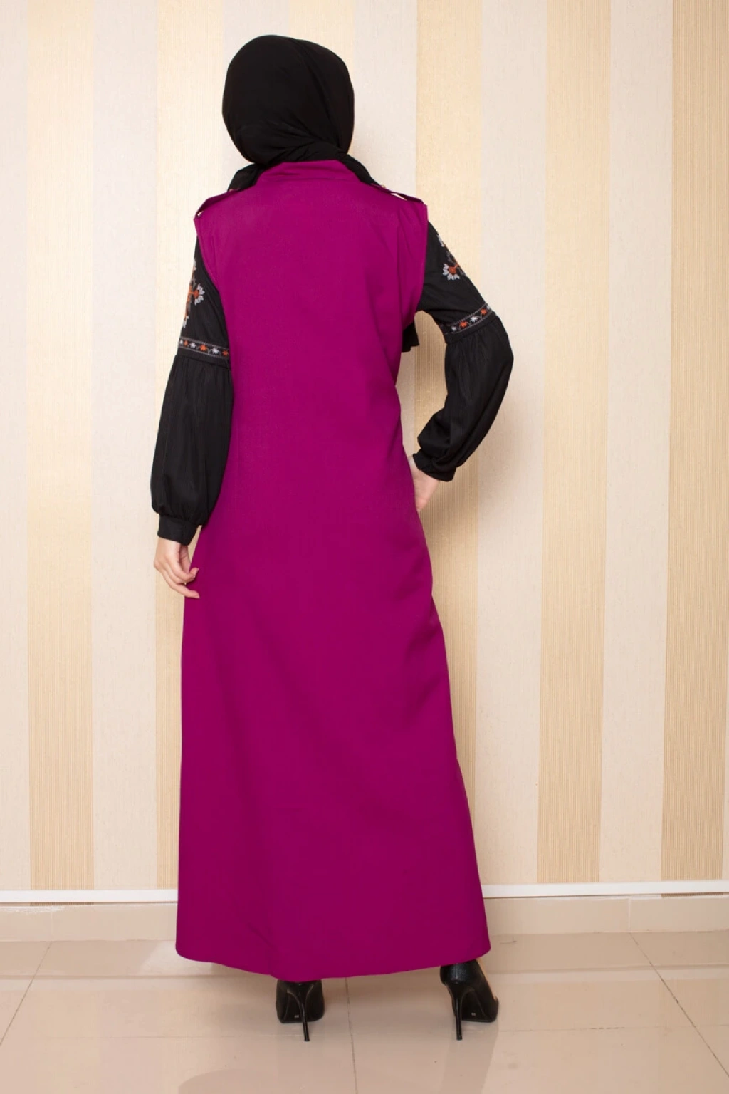 mürdüm modelimizde Krep kumaş kullanılmıştır. Ürünümüz kolsuz olarak tasarlanmıştır, şık bir görünüme sahiptir, Ürünümüz Düğme Detaylı ve kullanımı kolaydır. 4 Mevsim kullanılabilir özelliğe sahiptir. Ürünümüzün büyük beden seçenekleri mevcuttur.