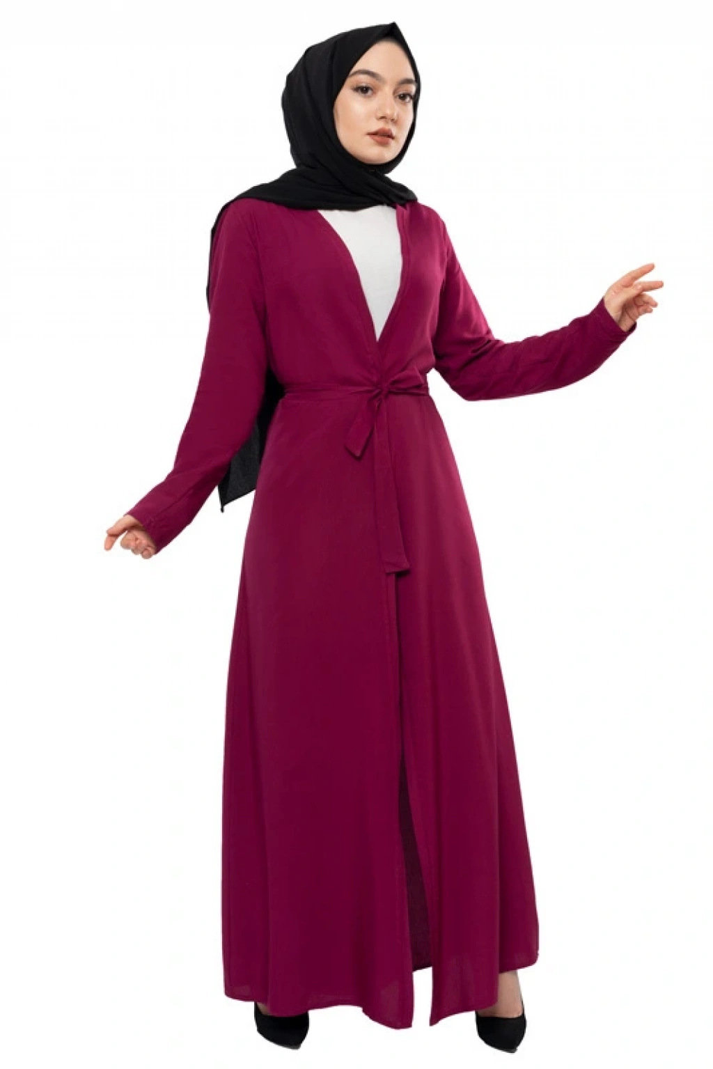 Kuşaklık Mevsimlik Abaya Mürdüm Sgs 0203