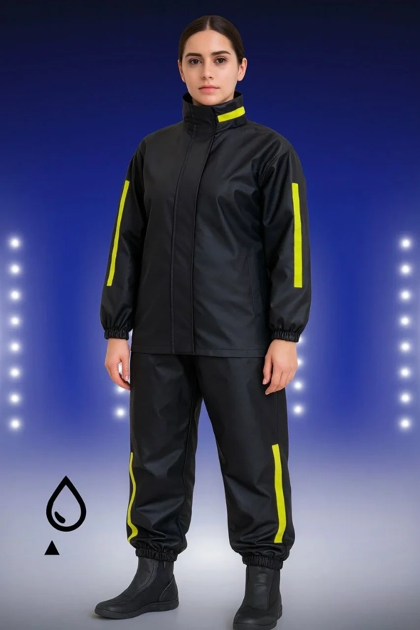 Premium Kadın Motorcu Kurye Yağmurluk Takım Su Geçirmez PVC Kumaş Reflektörlü TÜBİTAK Onaylı - Siyah