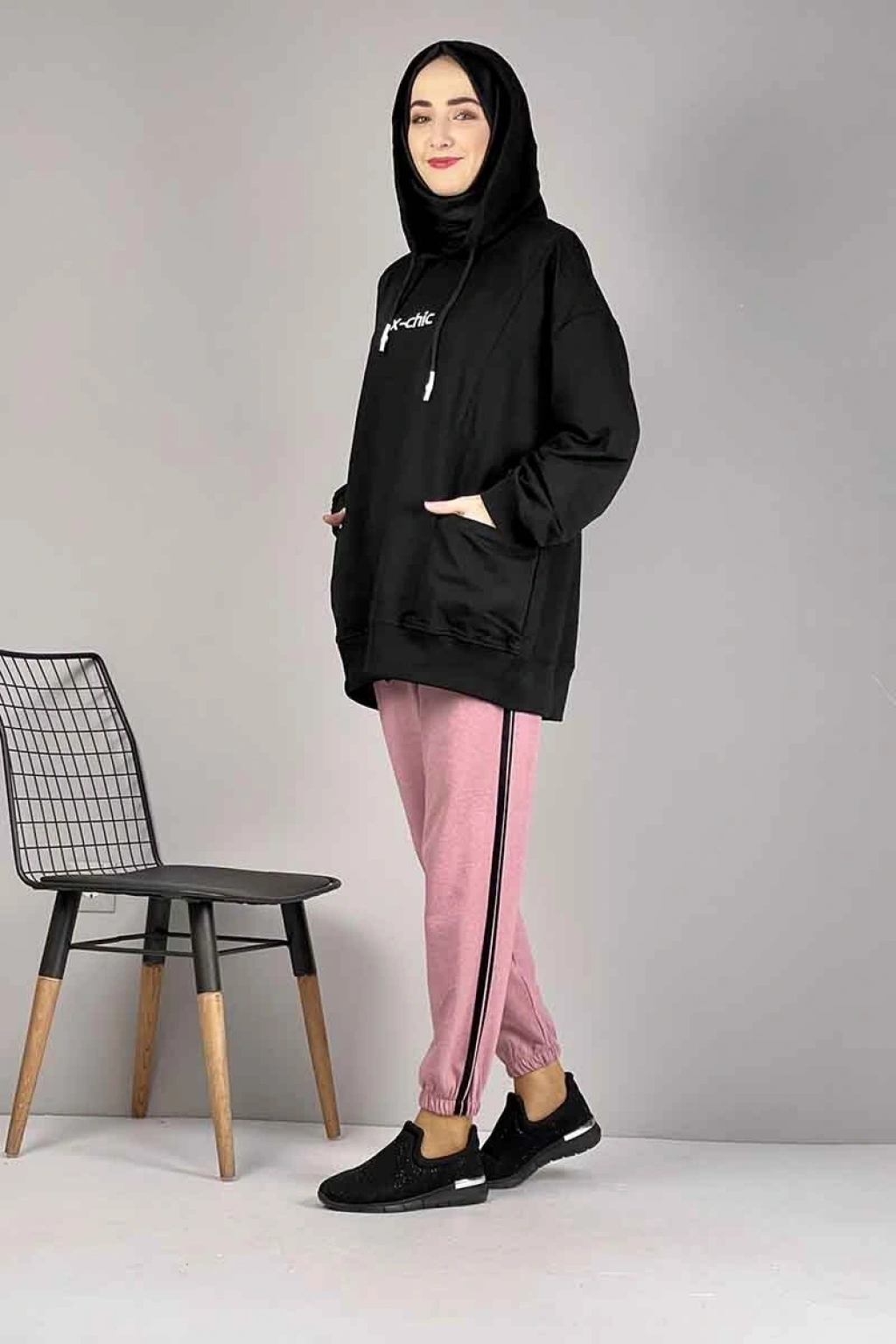 Şerit Detaylı Eşofman Altı Pudra Siyah
