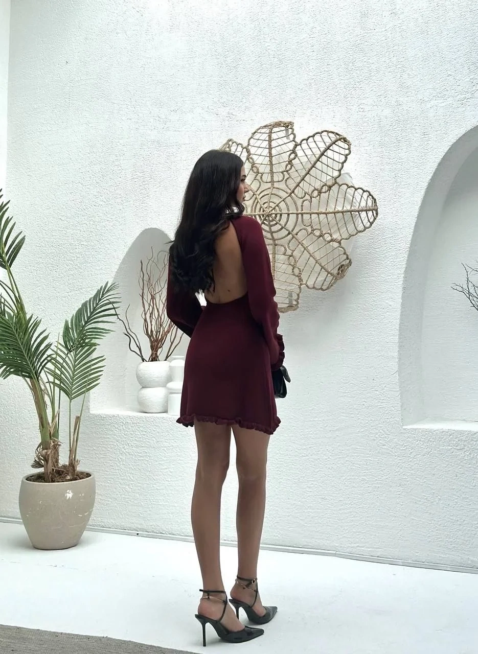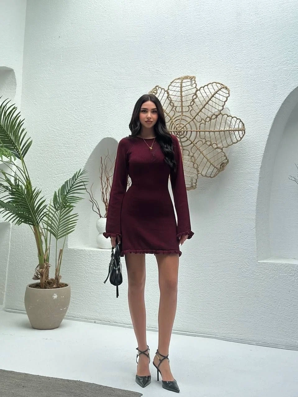 Kadın Uzun Kollu Bisiklet Yaka önden Volanlı Ithal Krep Elbise