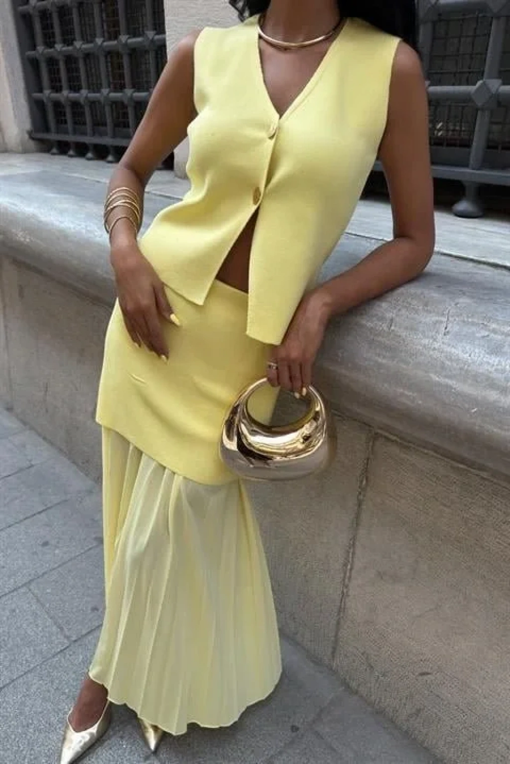 Yelekli Ve Pilise Etekli Triko Takım 10001
